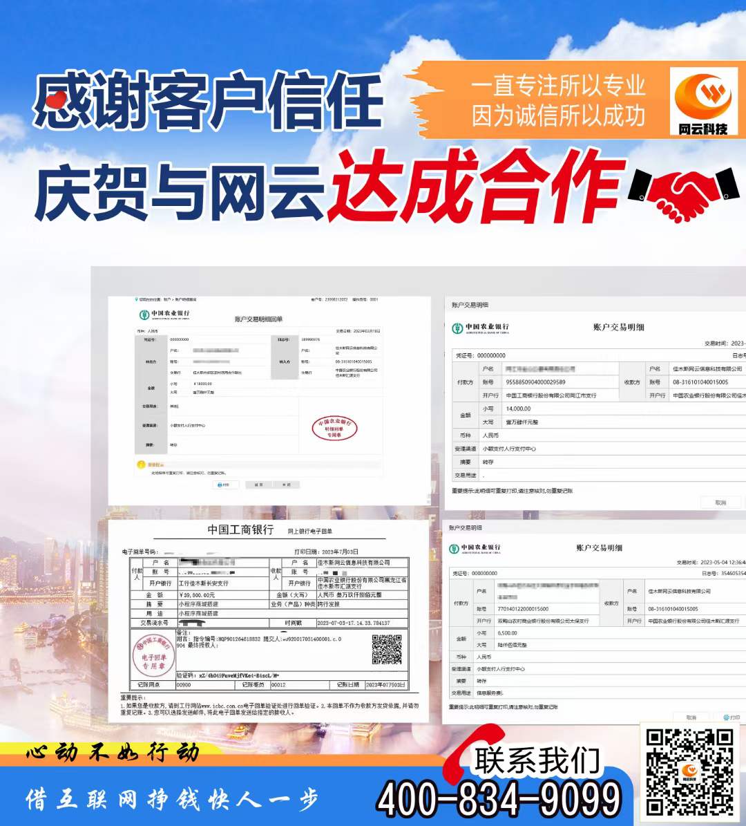 感謝客戶信任,慶賀與網(wǎng)云達(dá)成合作??!一直專注所以專業(yè),因?yàn)檎\信所以成功,選擇網(wǎng)云,選擇靠譜,心動(dòng)不如行動(dòng),借互聯(lián)網(wǎng)掙錢快人一步。