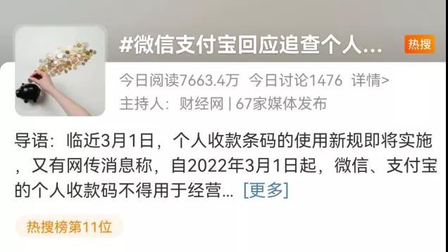據(jù)媒體報道,近期有網(wǎng)傳消息稱,自2022年3月1日起,微信、支付寶的個人收款碼不得用于經(jīng)營性收款。不僅如此,近4年的數(shù)據(jù)將被追查,一旦數(shù)額較大需按4.5%補稅,還要繳納滯納金和罰款。對此,微信和支付寶回應(yīng)稱,追查個人收款碼近4年數(shù)據(jù)的說法為謠言。