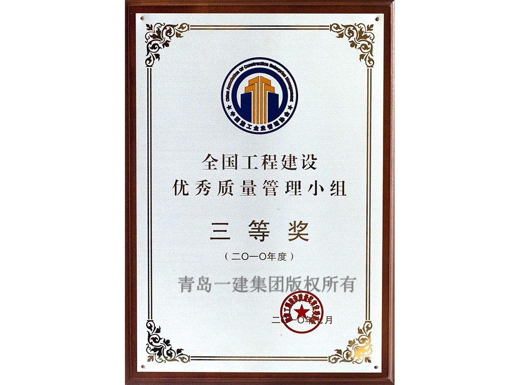 全國工程建設(shè)優(yōu)秀質(zhì)量小組企業(yè)三等獎