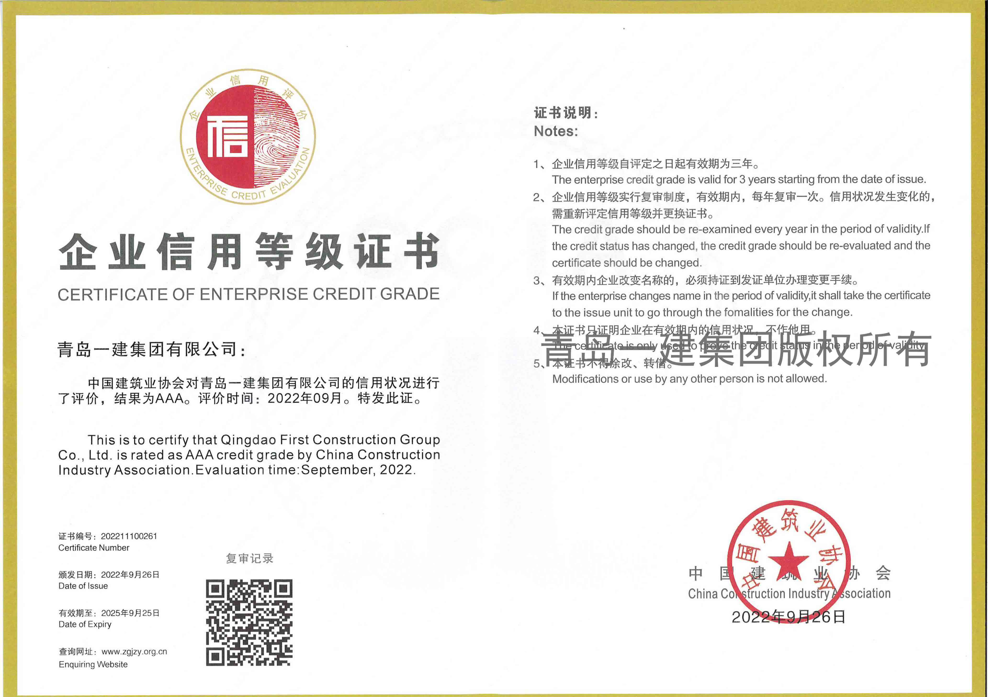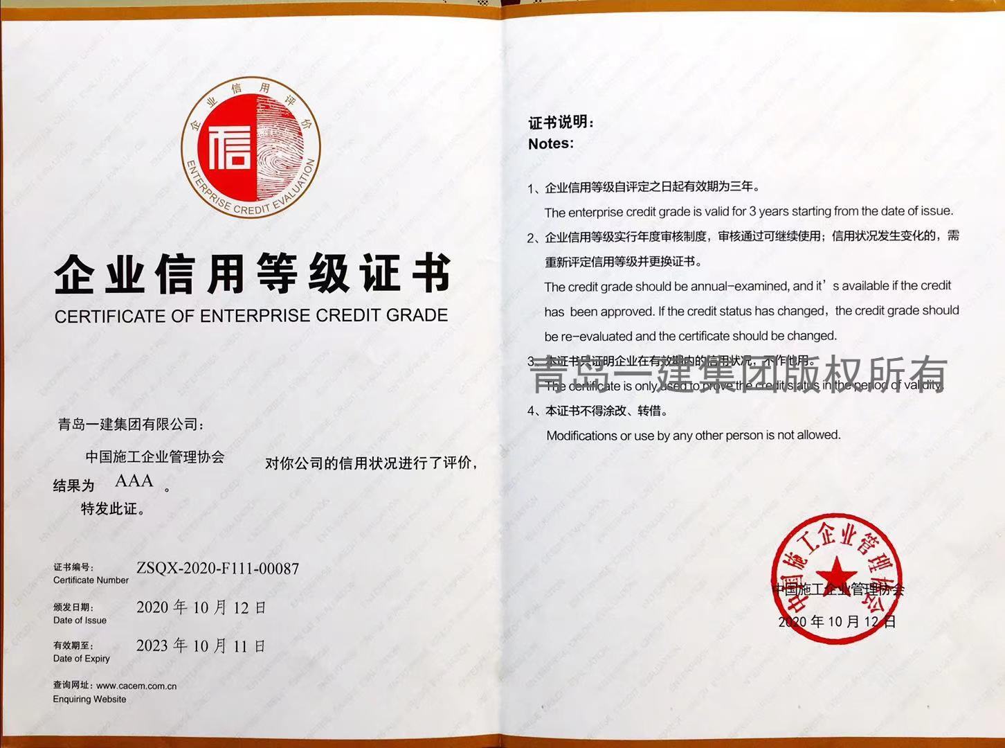 山東省企業(yè)信譽等級AAA企業(yè)