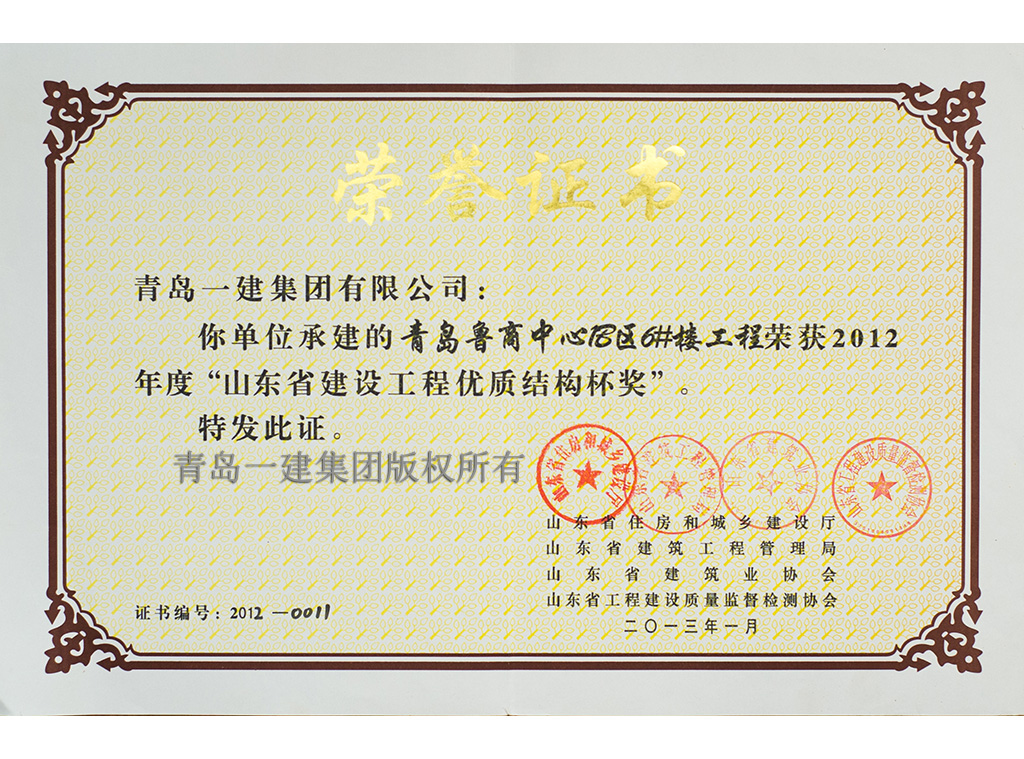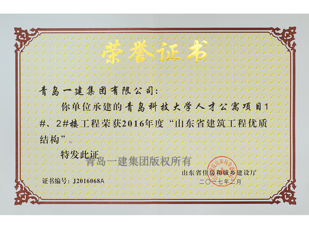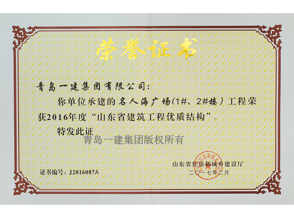 青島市優(yōu)質(zhì)結(jié)構(gòu)工程獎
