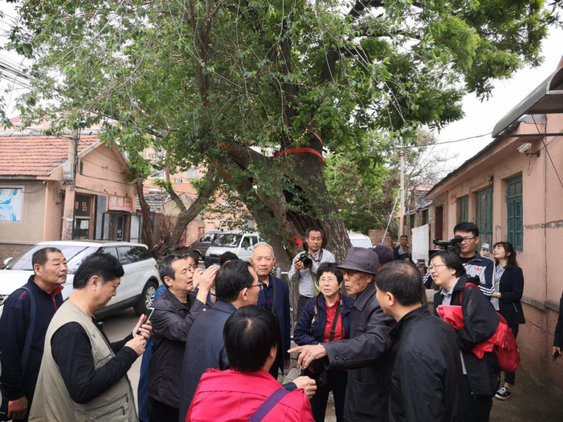 ? ? ? 上午10點(diǎn)整,活動(dòng)團(tuán)全員前往據(jù)丹山北面約5公里城陽古鎮(zhèn)村94師戰(zhàn)地醫(yī)院遺址——在歷經(jīng)400年滄桑的空心老槐樹下,大家聚在一起聆聽村里一位91歲大爺講述解放青島前94師戰(zhàn)地醫(yī)院為革命事業(yè)轟轟烈烈工作的場景,一位紅二代也向大家講述了他母親當(dāng)時(shí)在戰(zhàn)地醫(yī)院工作的事跡。