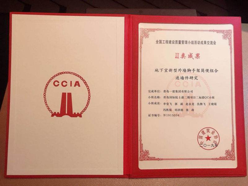 ? ? ? 近日,中國建筑業(yè)協(xié)會舉辦的全國工程建設(shè)質(zhì)量管理小組活動成果交流會在寧夏回族自治區(qū)銀川市舉行,青島一建集團選送的《地下室新型外墻腳手架簡便組合連墻件研究》在會上取得了全國Ⅱ類成果(二等獎)的佳績!